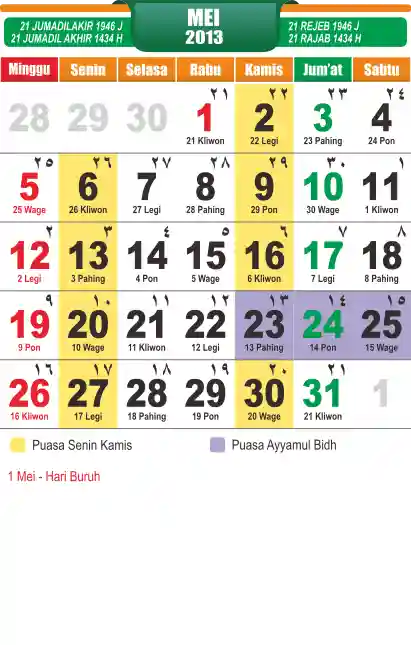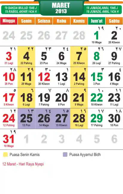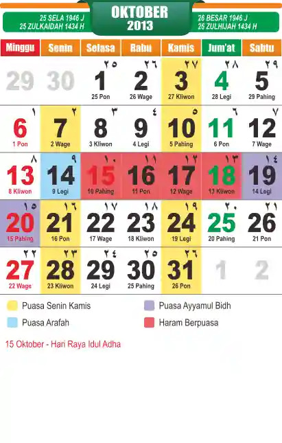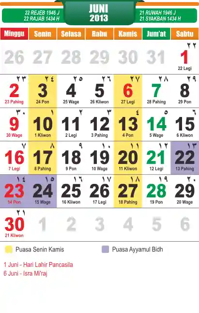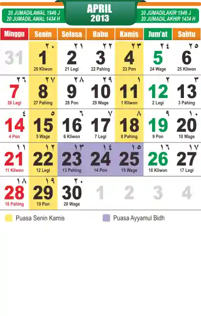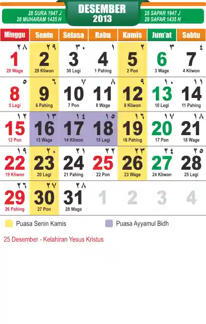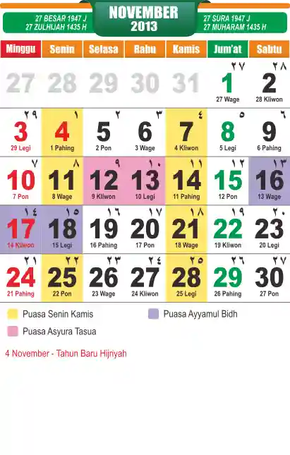 Template Islamic Javanese Calendar Vector