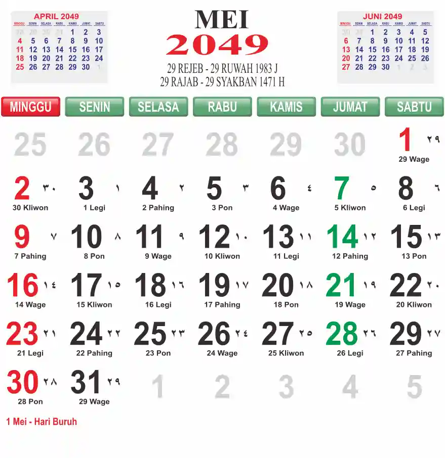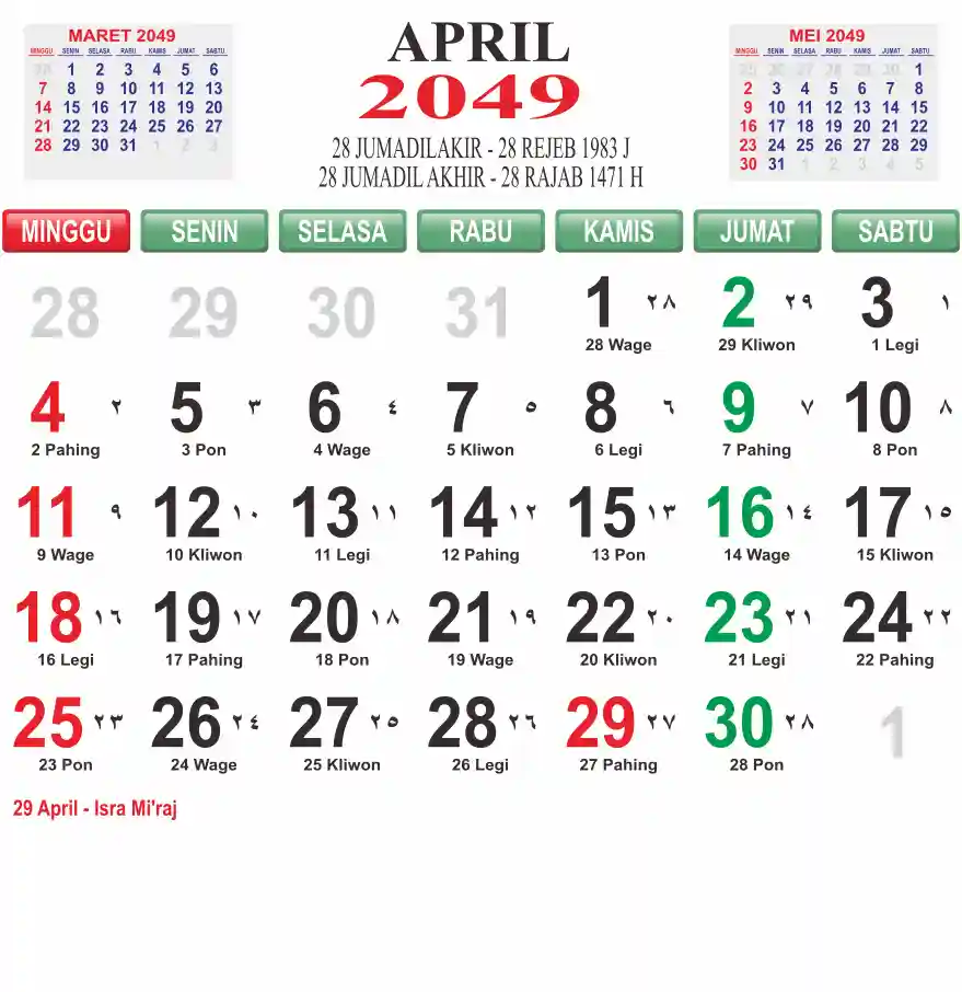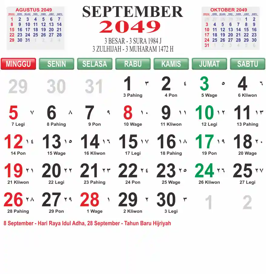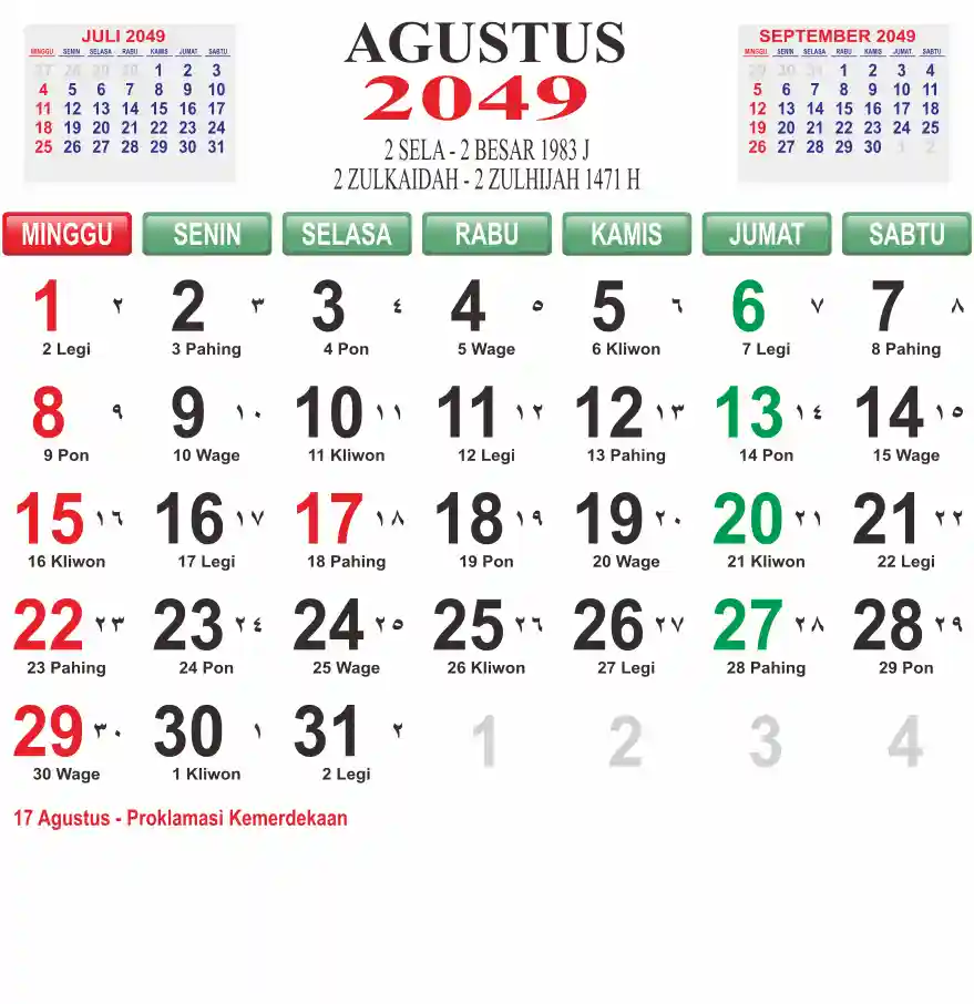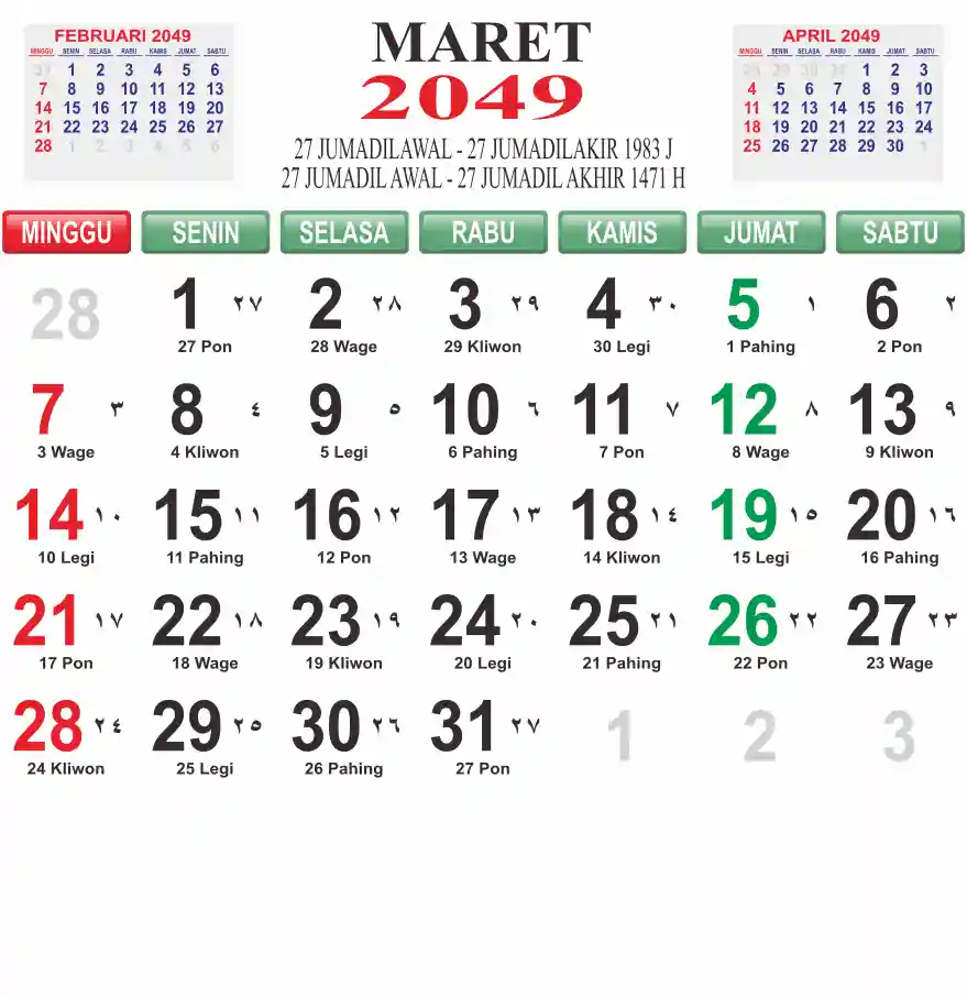 Template kalender 2049 lembaran besar jumbo yang mudah di baca dari jarak jauh. Kalender ini biasanya di cetak 1 lembar per bulan.