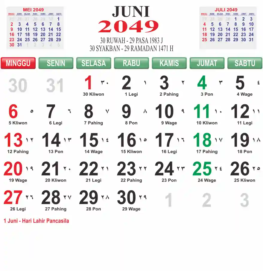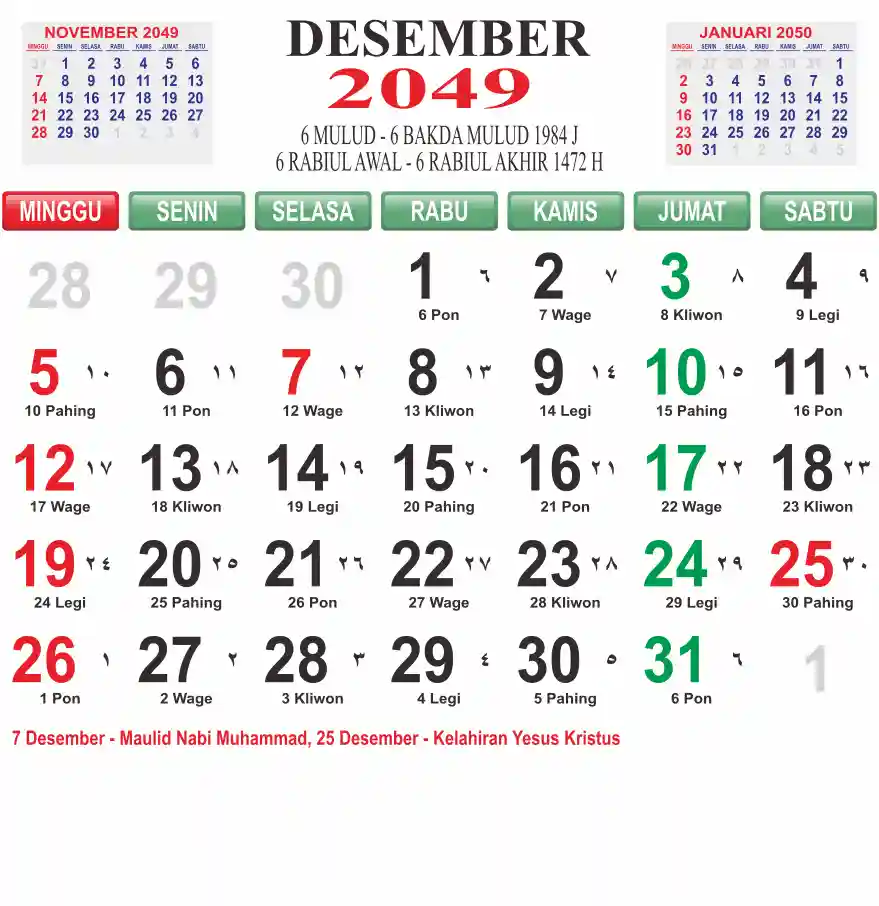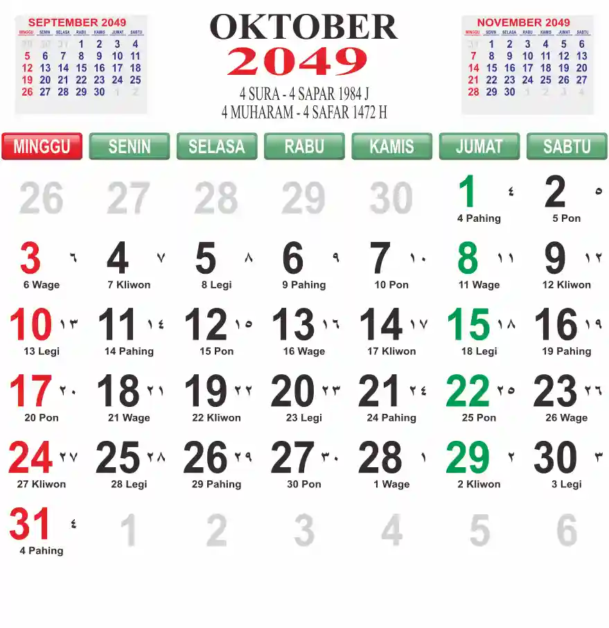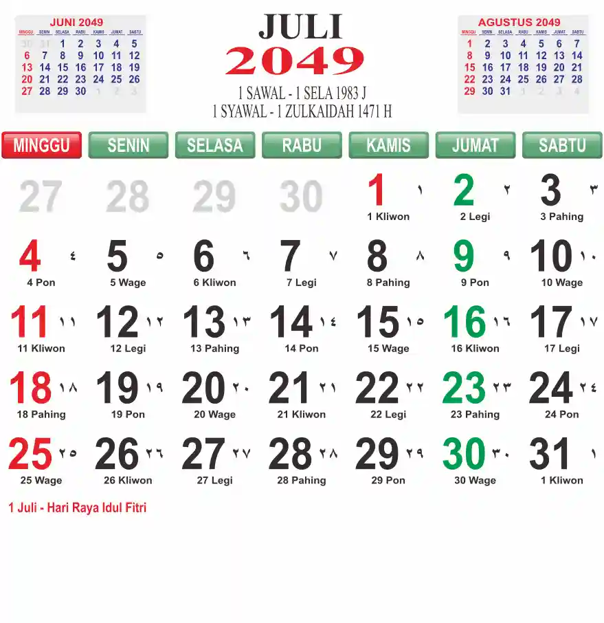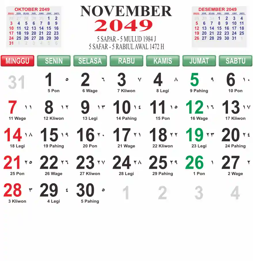 Template kalender 2049 lembaran besar jumbo yang mudah di baca dari jarak jauh. Kalender ini biasanya di cetak 1 lembar per bulan.