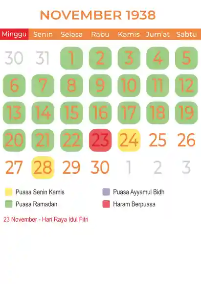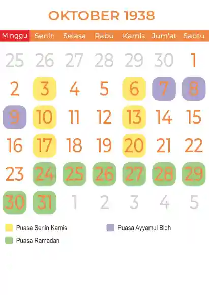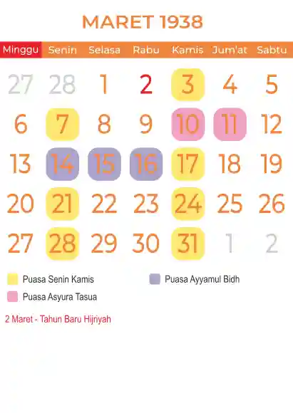 Template kalender puasa 1938, Versi yang lebih simple, cocok sekali buat anda yang ingin cetak kalender yang bermanfat buat umat.