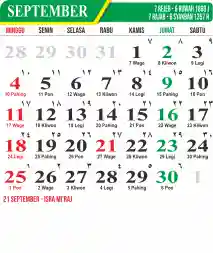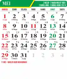 Tema kalender 1938 yang nuansa Islami yang cocok buat pondok pesantren atau lembaga keagamaan. Menggunakan font standar Times New Roman yang mudah dibaca.