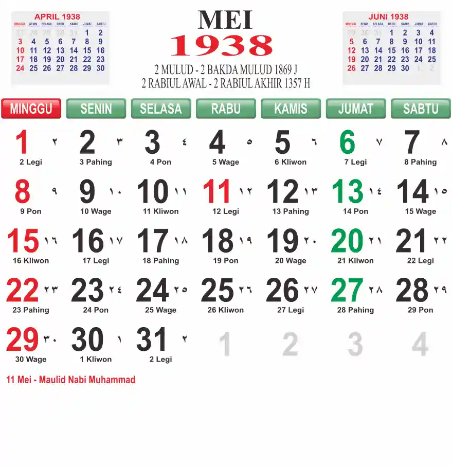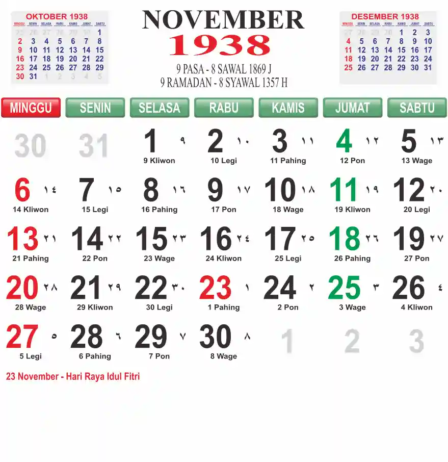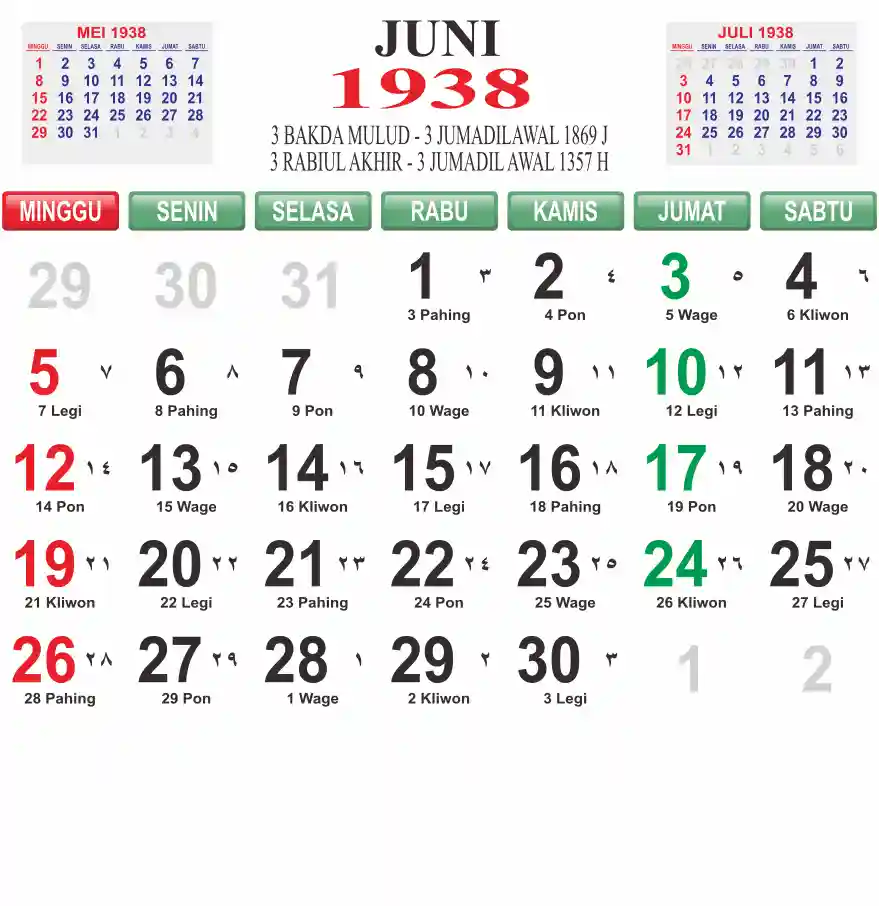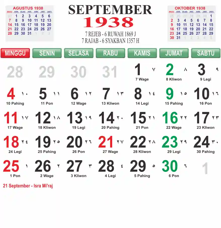Template kalender 1938 lembaran besar jumbo yang mudah di baca dari jarak jauh. Kalender ini biasanya di cetak 1 lembar per bulan.