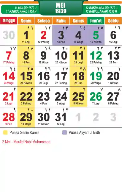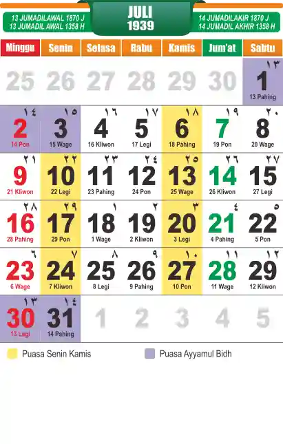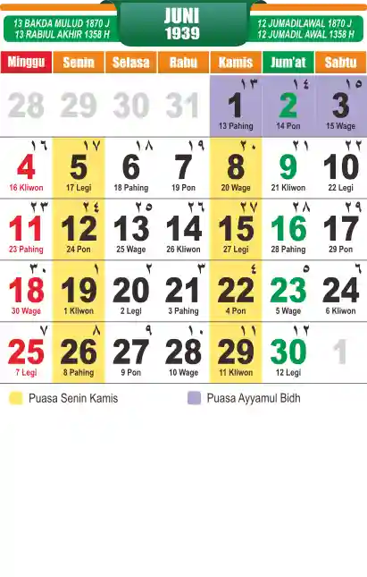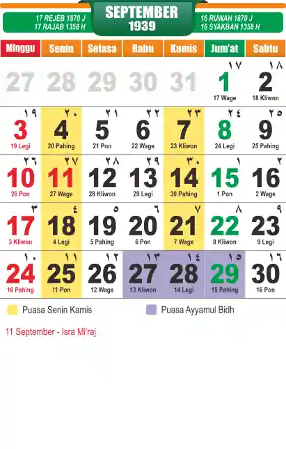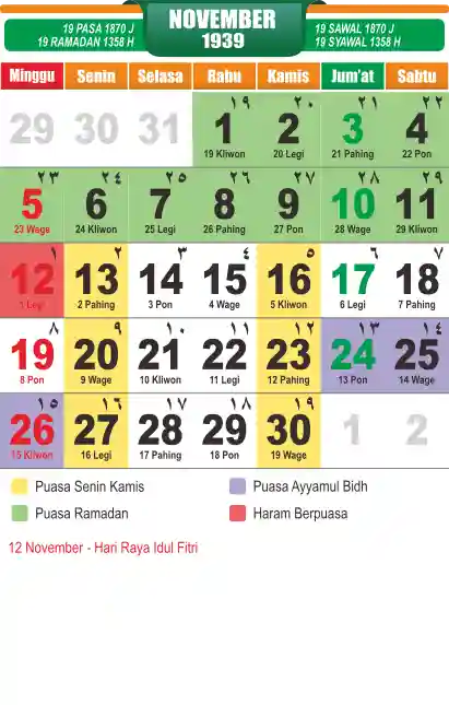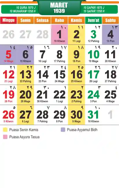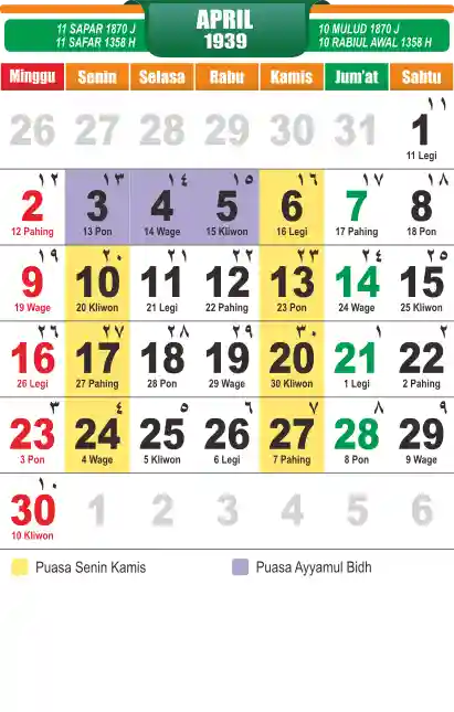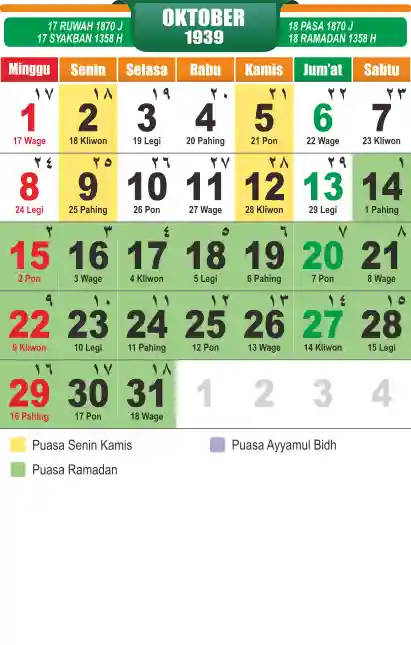 Template kalender puasa 1939, cocok sekali buat anda yang ingin cetak kalender yang bermanfat buat umat.