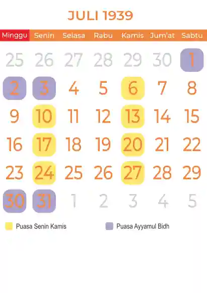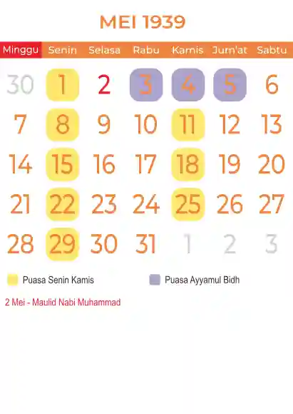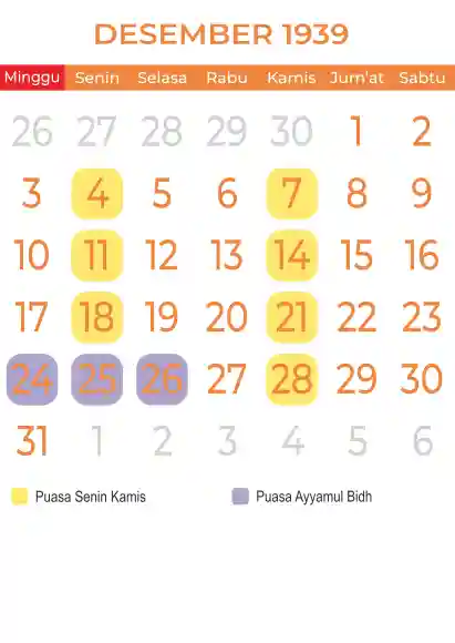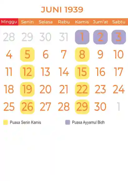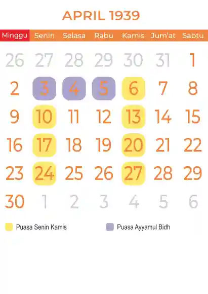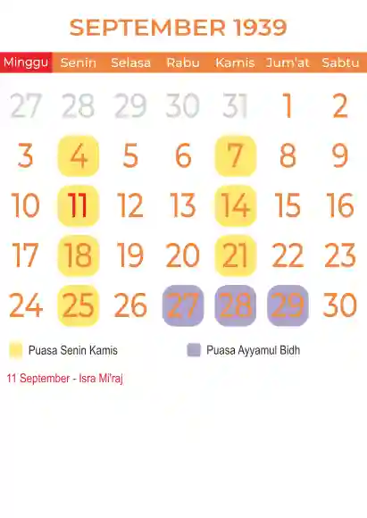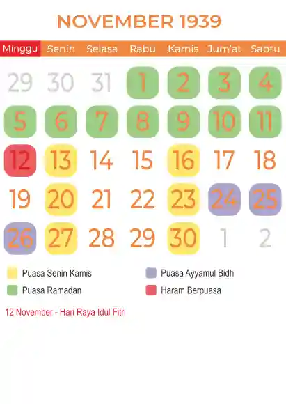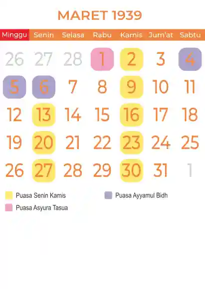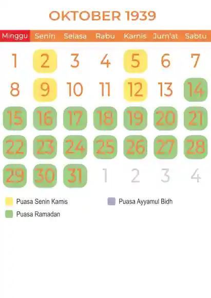 Template kalender puasa 1939, Versi yang lebih simple, cocok sekali buat anda yang ingin cetak kalender yang bermanfat buat umat.