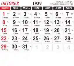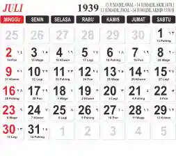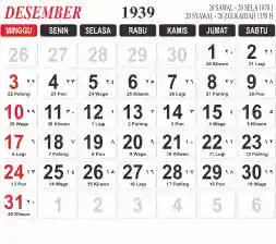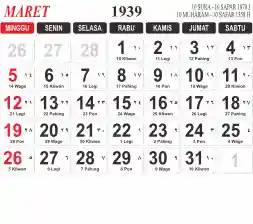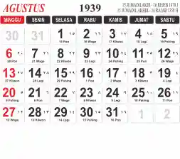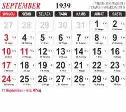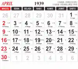 Tema kalender 1939 yang cocok buat desain kalender yang lebih lebar, cocok buat kalender kantor atau desain yang lebih minimalis.