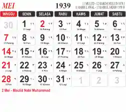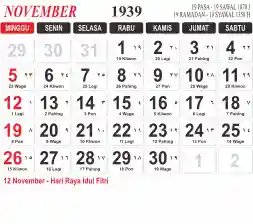 List hari libur tahun 1939 pada Tema 3 (Wide)