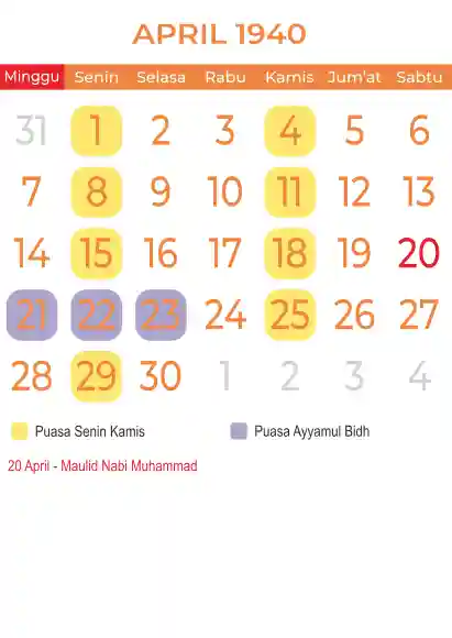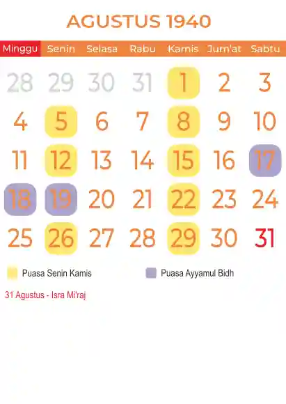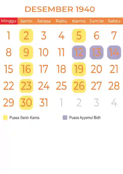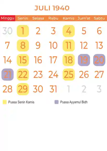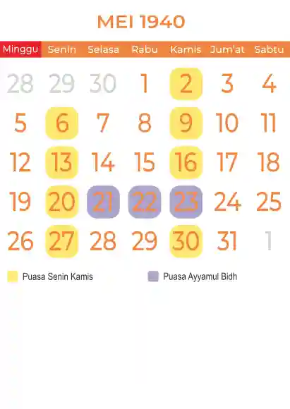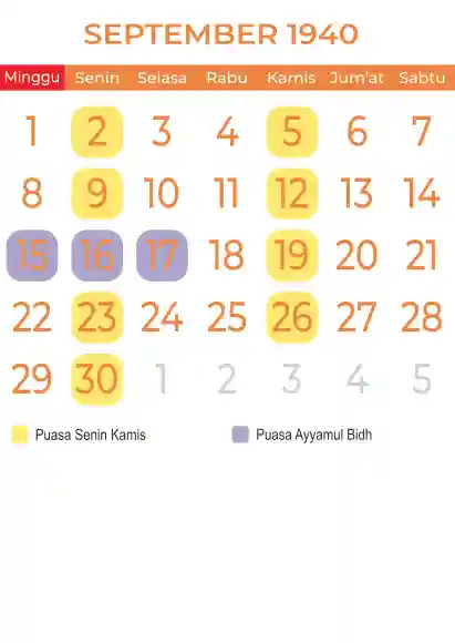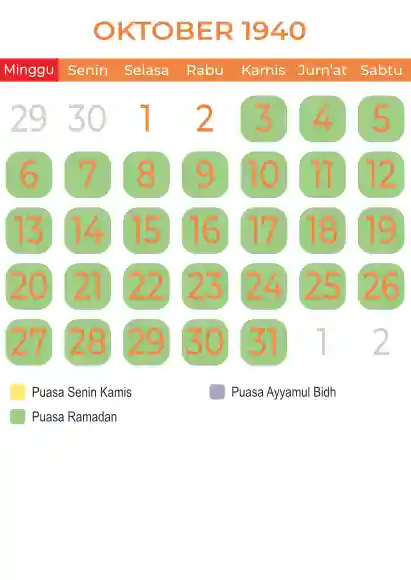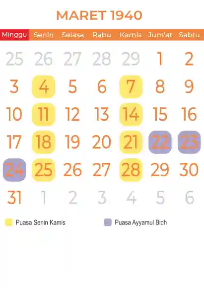Template kalender puasa 1940, Versi yang lebih simple, cocok sekali buat anda yang ingin cetak kalender yang bermanfat buat umat.