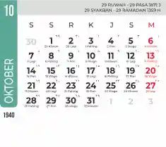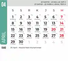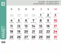 Template kalender 1940 dengan konsep minimalis modern dengan warna yang soft, cocok sekali buat kantor / bisnis seperti bank.