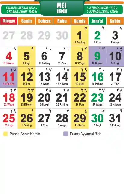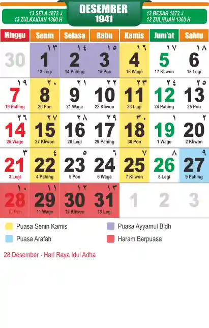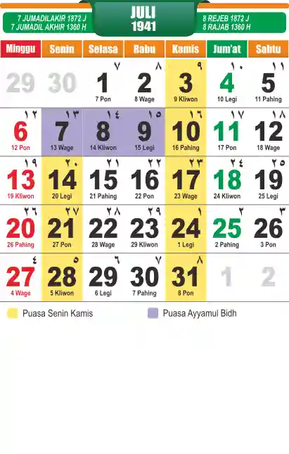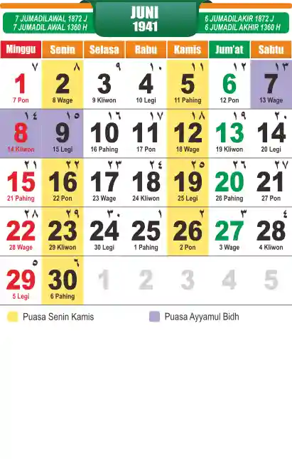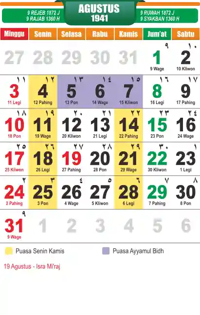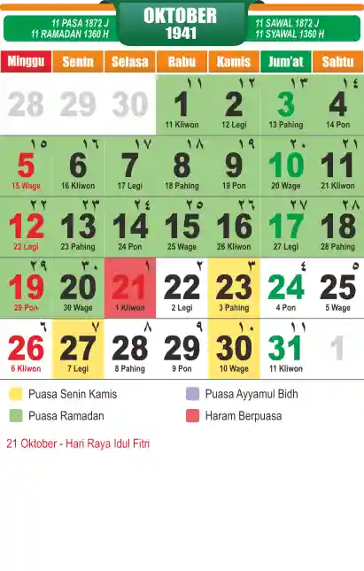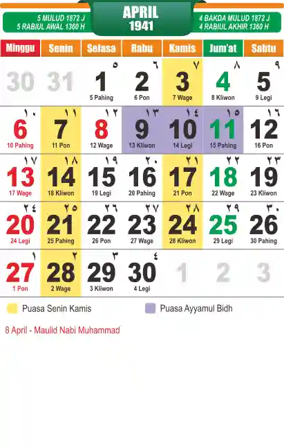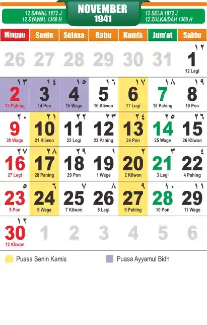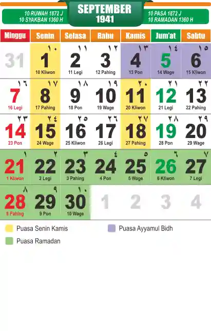 Template kalender puasa 1941, cocok sekali buat anda yang ingin cetak kalender yang bermanfat buat umat.
