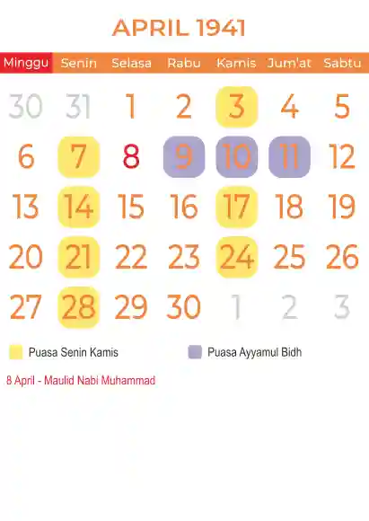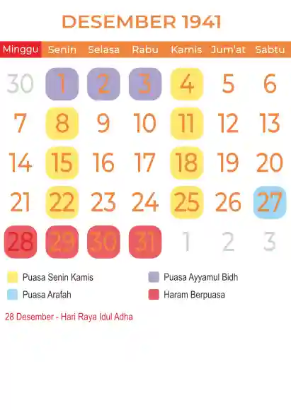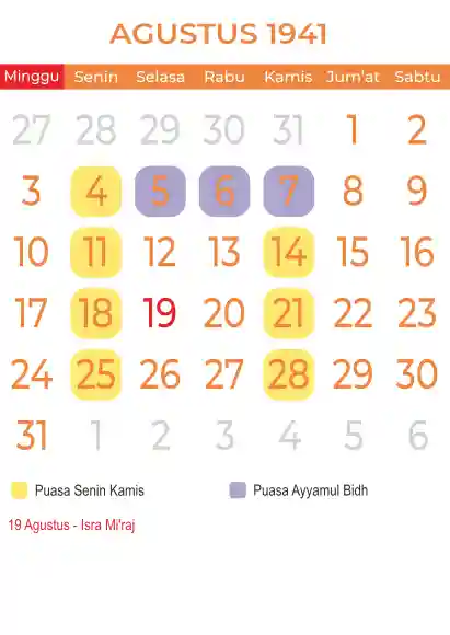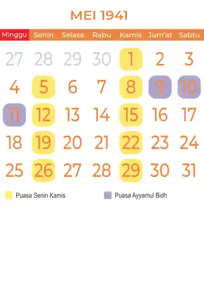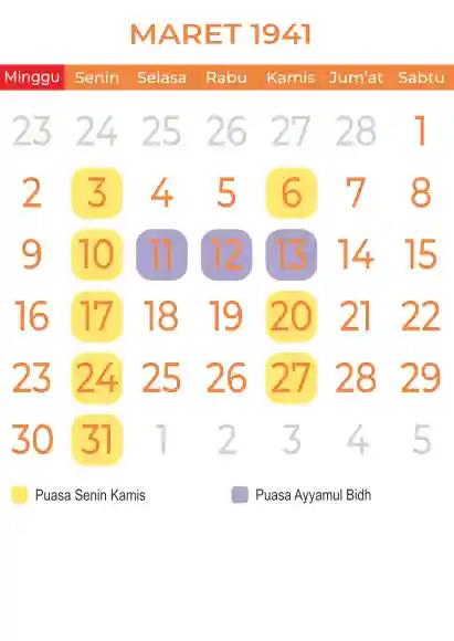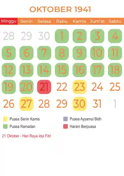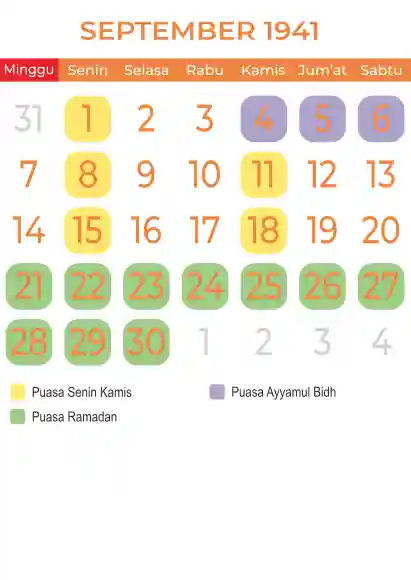 Template kalender puasa 1941, Versi yang lebih simple, cocok sekali buat anda yang ingin cetak kalender yang bermanfat buat umat.