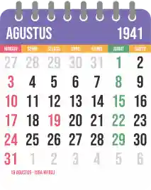 Template kalender 1941 yang bertemakan lucu dan moderen. Bentuknya simple tanpa tanggal hijriah dan tanggal jawa. Cocok buat kebutuhan kalender yang sifatnya universal.