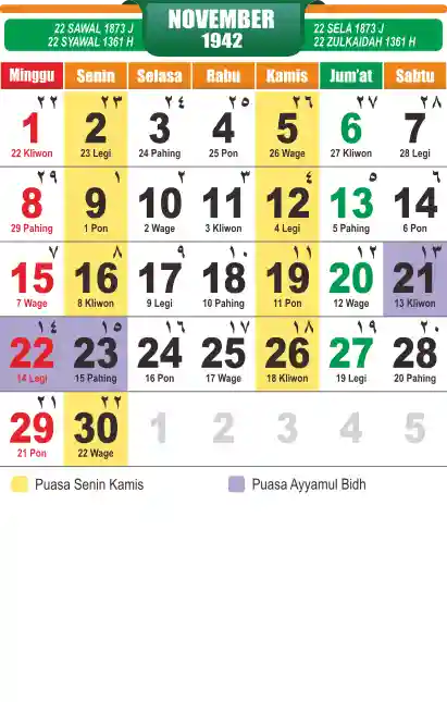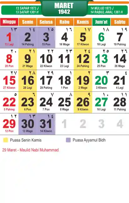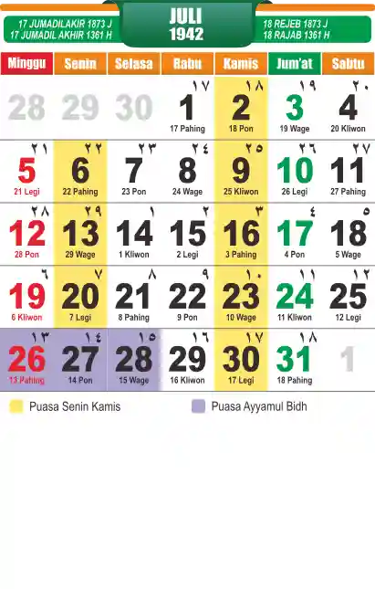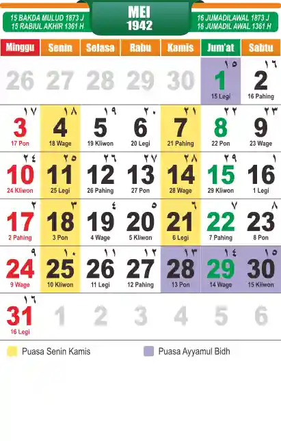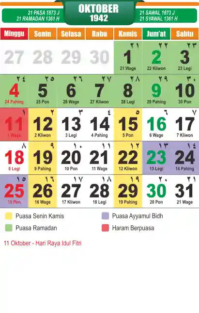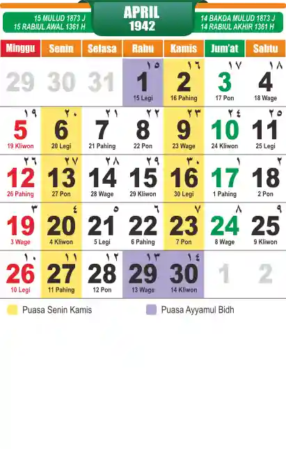 Template kalender puasa 1942, cocok sekali buat anda yang ingin cetak kalender yang bermanfat buat umat.