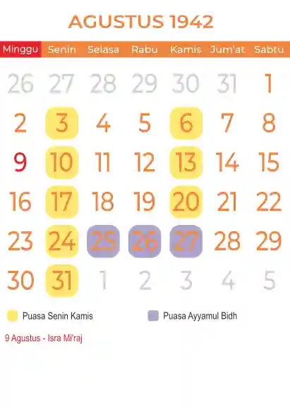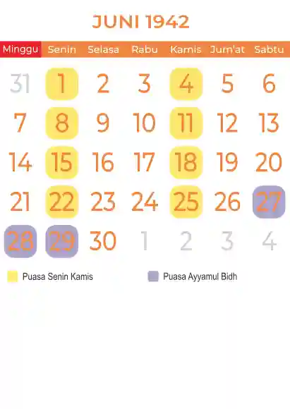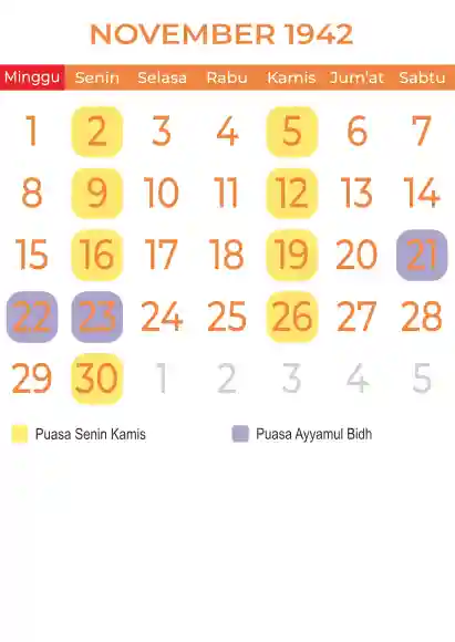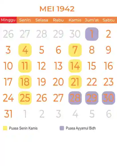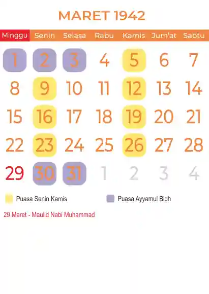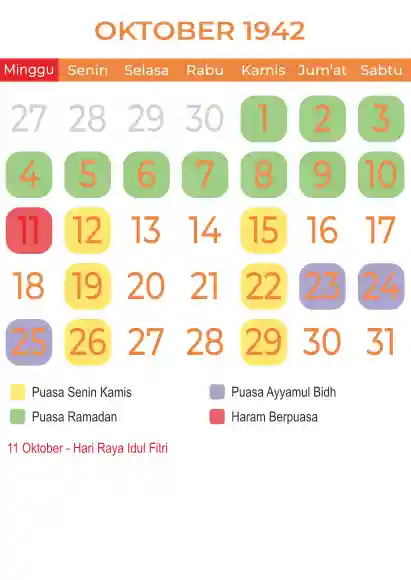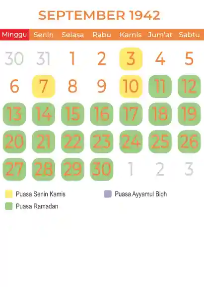 Template kalender puasa 1942, Versi yang lebih simple, cocok sekali buat anda yang ingin cetak kalender yang bermanfat buat umat.