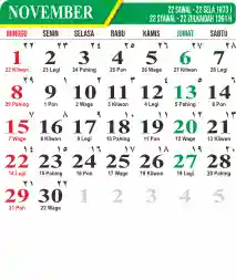 Template Kalender Jawa + Hijriah Vector