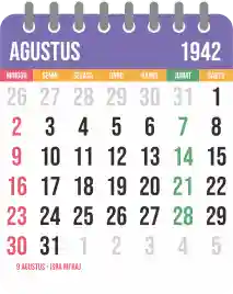 Template kalender 1942 yang bertemakan lucu dan moderen. Bentuknya simple tanpa tanggal hijriah dan tanggal jawa. Cocok buat kebutuhan kalender yang sifatnya universal.