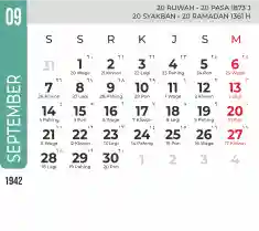 Template kalender 1942 dengan konsep minimalis modern dengan warna yang soft, cocok sekali buat kantor / bisnis seperti bank.