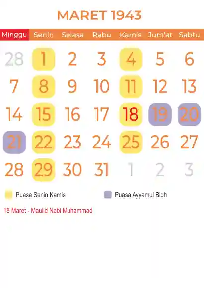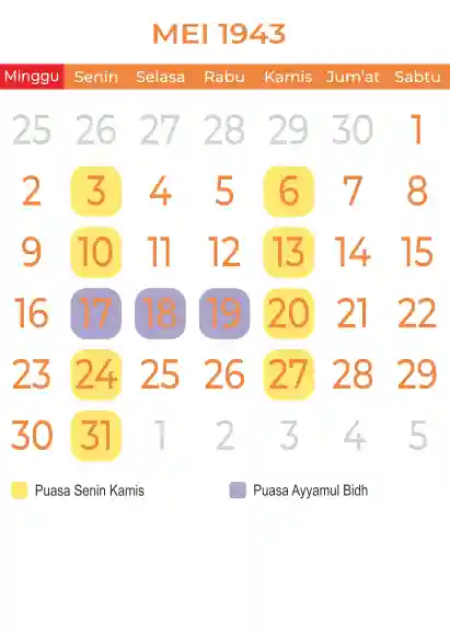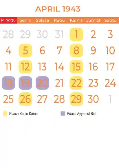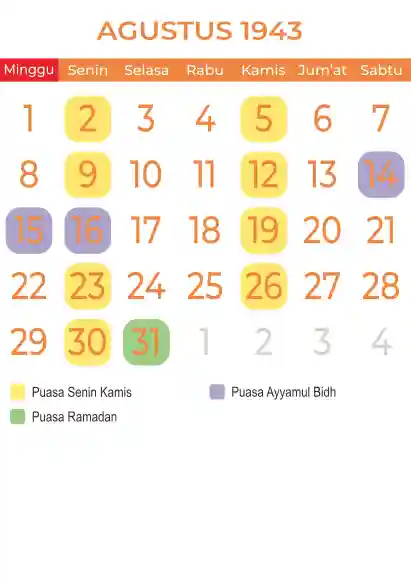 Template kalender puasa 1943, Versi yang lebih simple, cocok sekali buat anda yang ingin cetak kalender yang bermanfat buat umat.