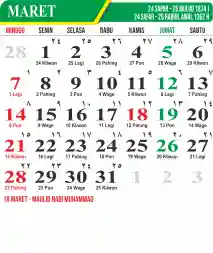 Tema kalender 1943 yang nuansa Islami yang cocok buat pondok pesantren atau lembaga keagamaan. Menggunakan font standar Times New Roman yang mudah dibaca.