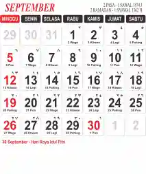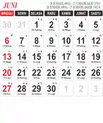 Template Kalender Jawa + Hijriah Vector