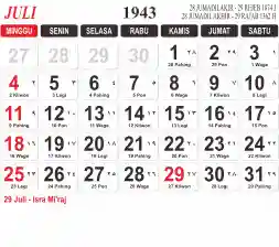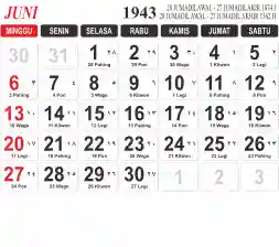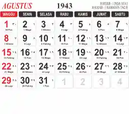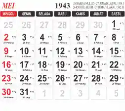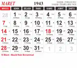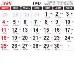 Tema kalender 1943 yang cocok buat desain kalender yang lebih lebar, cocok buat kalender kantor atau desain yang lebih minimalis.