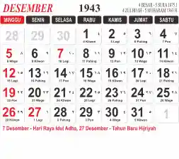 List hari libur tahun 1943 pada Tema 3 (Wide)