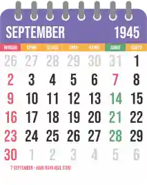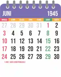 Template kalender 1945 yang bertemakan lucu dan moderen. Bentuknya simple tanpa tanggal hijriah dan tanggal jawa. Cocok buat kebutuhan kalender yang sifatnya universal.