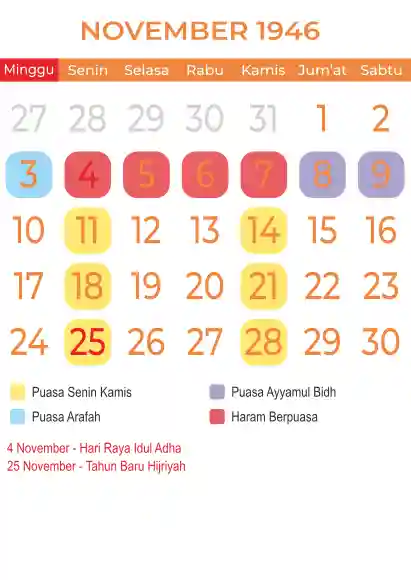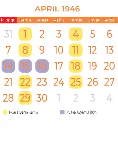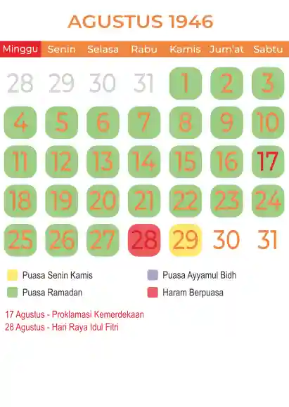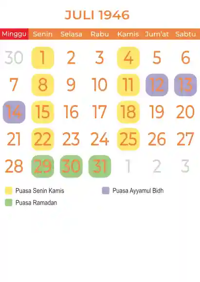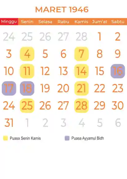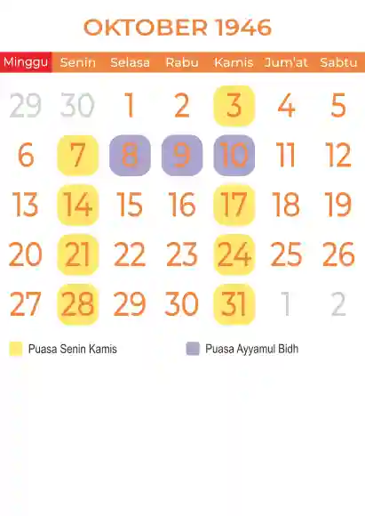 Template kalender puasa 1946, Versi yang lebih simple, cocok sekali buat anda yang ingin cetak kalender yang bermanfat buat umat.