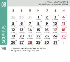 Template kalender 1946 dengan konsep minimalis modern dengan warna yang soft, cocok sekali buat kantor / bisnis seperti bank.