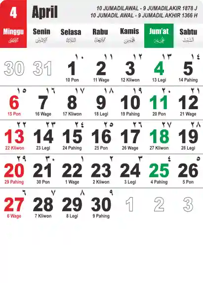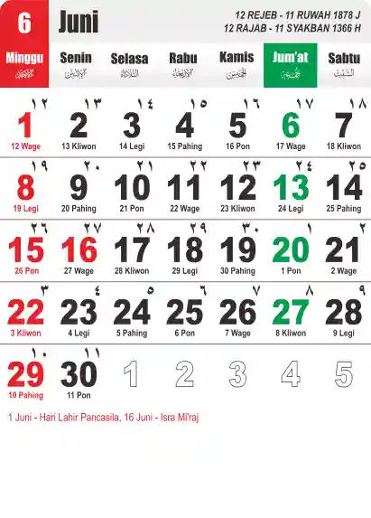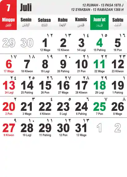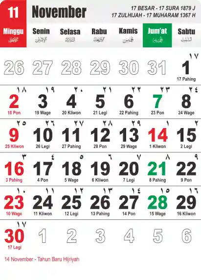 Template Kalender Jawa + Hijriah Vector