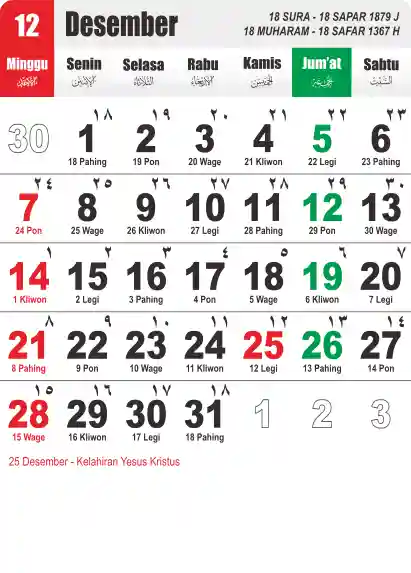 Tema kalender 1947 yang universal cocok untuk desain keperluan bisnis, instansi, sekolah, universitas, lembaga, pesantren. Tema ini sangat simpel namun elegan. Tulisannya kami buat besar agar dapat mudah dibaca.