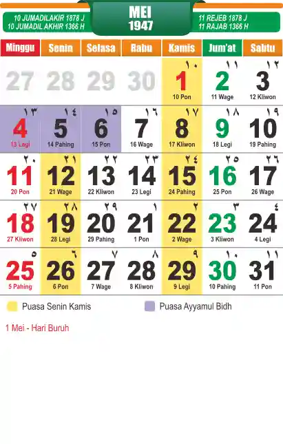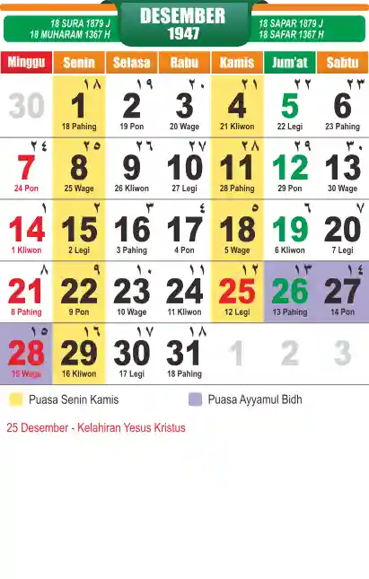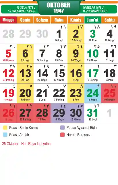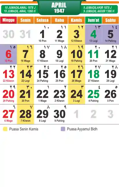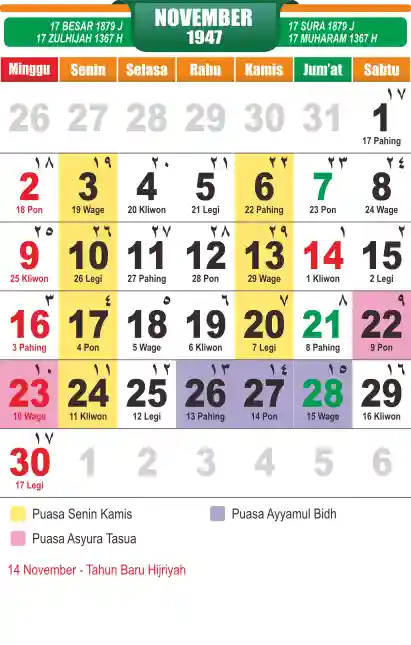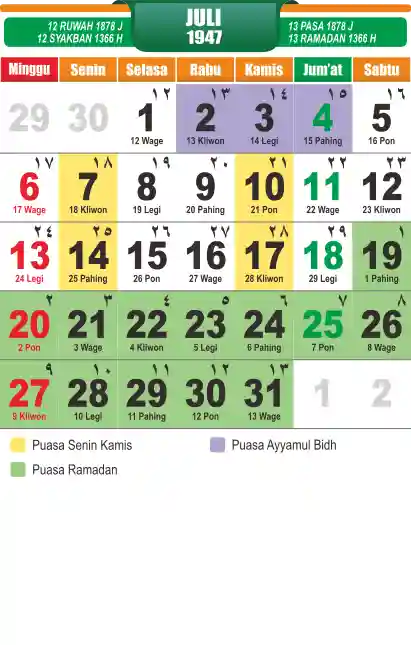 Template kalender puasa 1947, cocok sekali buat anda yang ingin cetak kalender yang bermanfat buat umat.