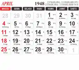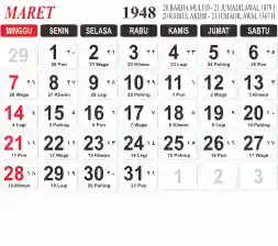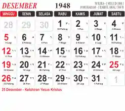 Tema kalender 1948 yang cocok buat desain kalender yang lebih lebar, cocok buat kalender kantor atau desain yang lebih minimalis.