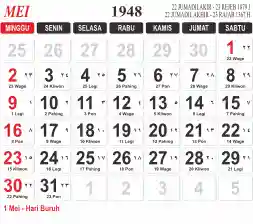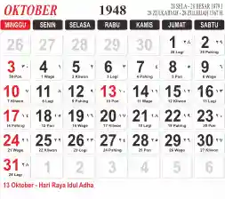 List hari libur tahun 1948 pada Tema 3 (Wide)