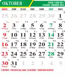 Template Kalender Jawa + Hijriah Vector