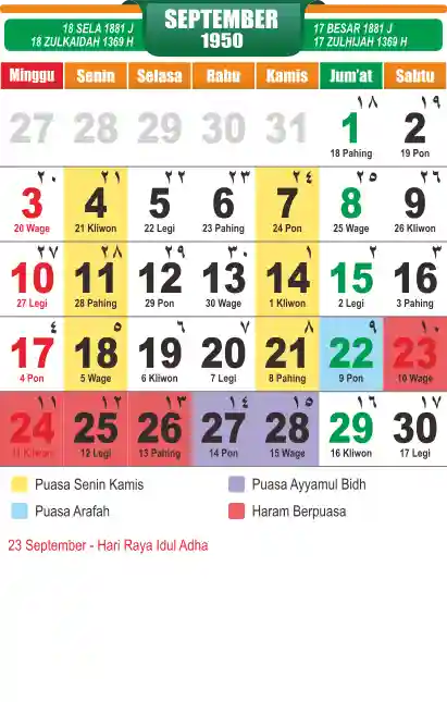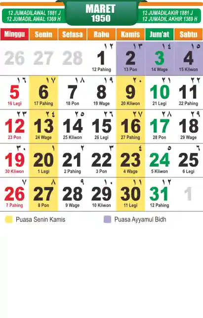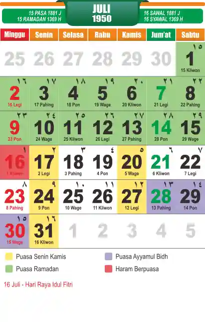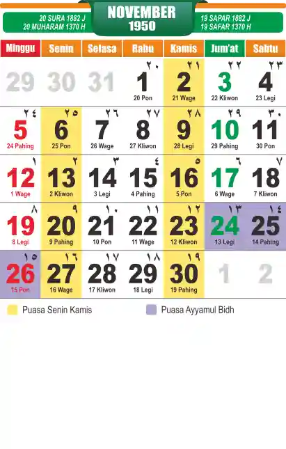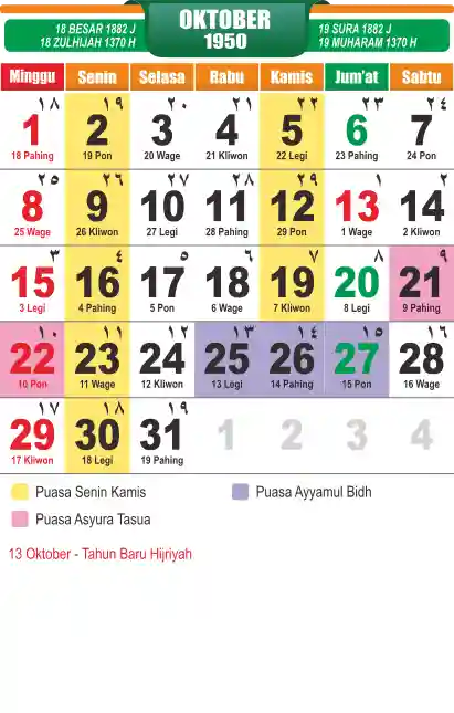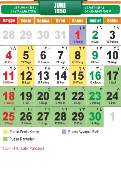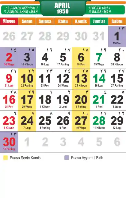 Template kalender puasa 1950, cocok sekali buat anda yang ingin cetak kalender yang bermanfat buat umat.