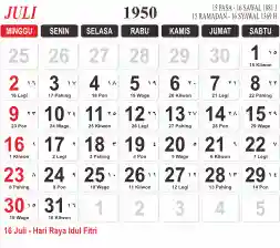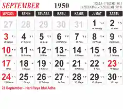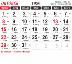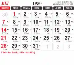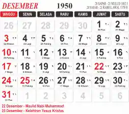 List hari libur tahun 1950 pada Tema 3 (Wide)