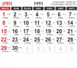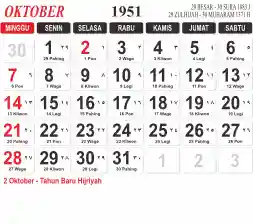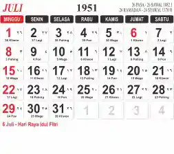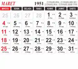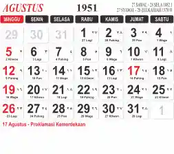 Tema kalender 1951 yang cocok buat desain kalender yang lebih lebar, cocok buat kalender kantor atau desain yang lebih minimalis.
