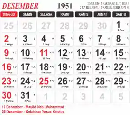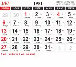 List hari libur tahun 1951 pada Tema 3 (Wide)