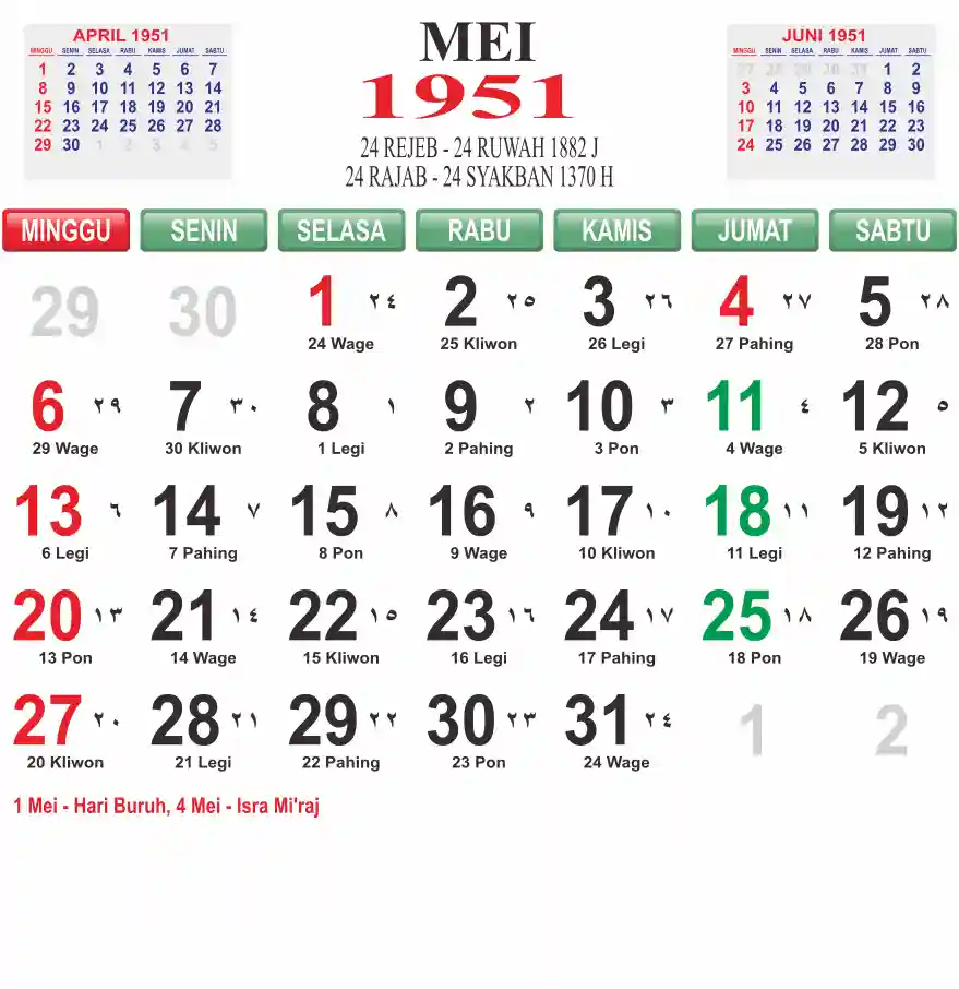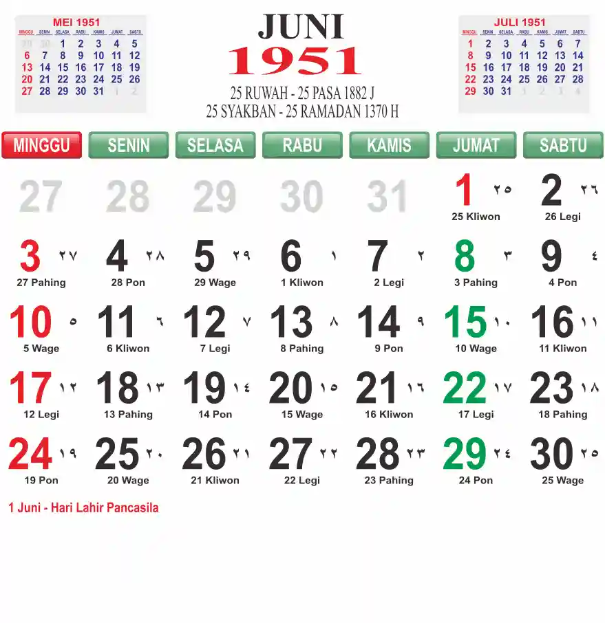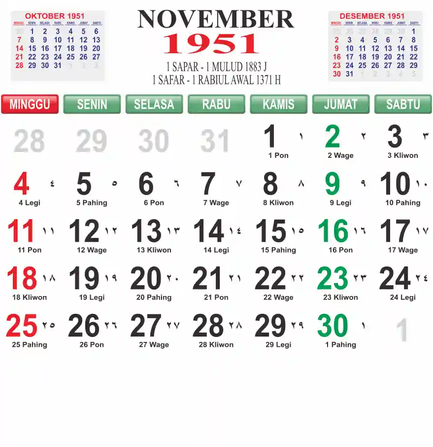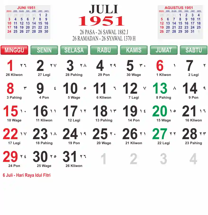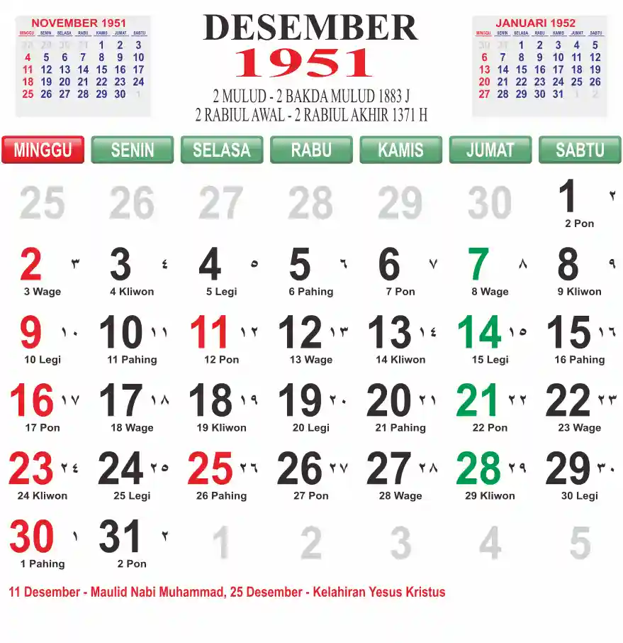 Template kalender 1951 lembaran besar jumbo yang mudah di baca dari jarak jauh. Kalender ini biasanya di cetak 1 lembar per bulan.