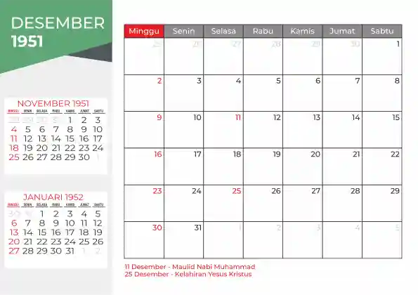 Template kalender 1951 duduk planner. Ada space kosong yang bisa di isi untuk menulis catatan. Fokus utama kalender ini adalah sebagia planner.