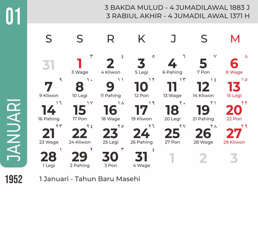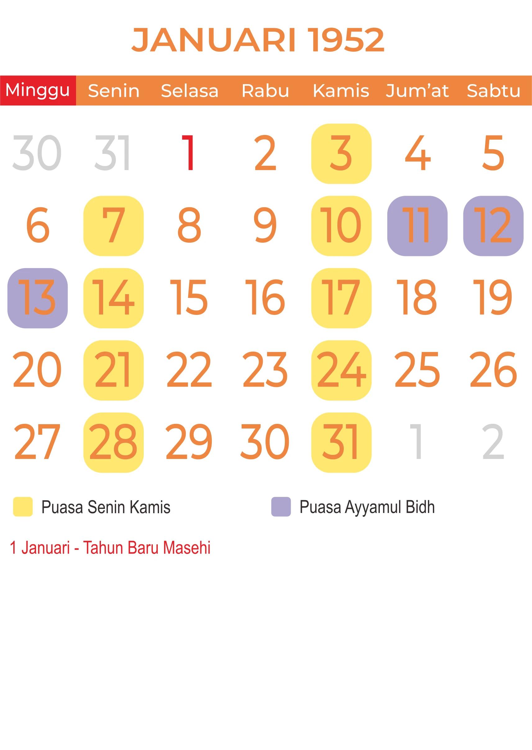 Dapatkan akses vector template kalender 1952 dengan berbagai tema, file editable, warna CMYK / RGB untuk CorelDRAW.