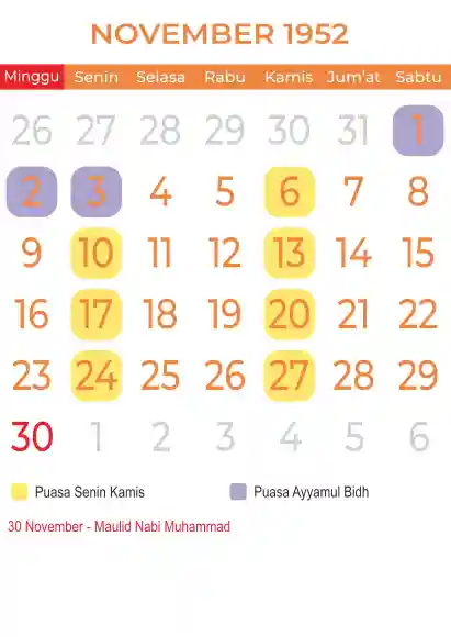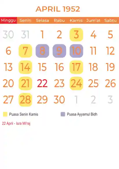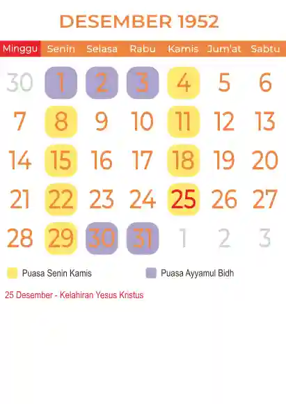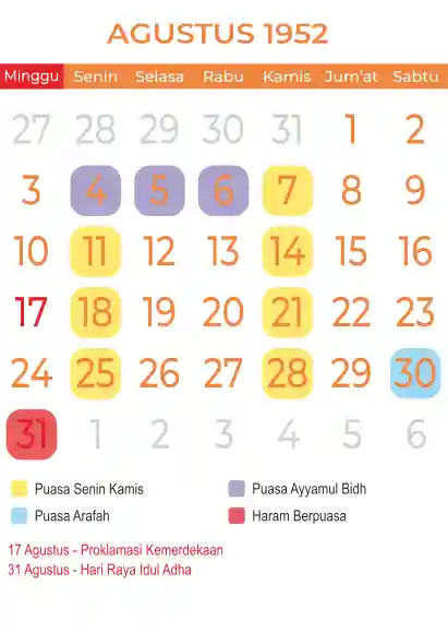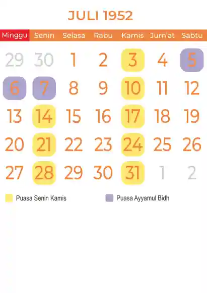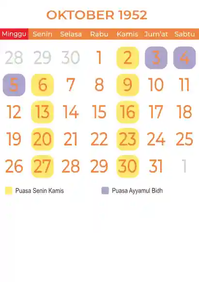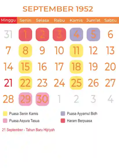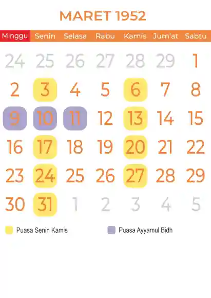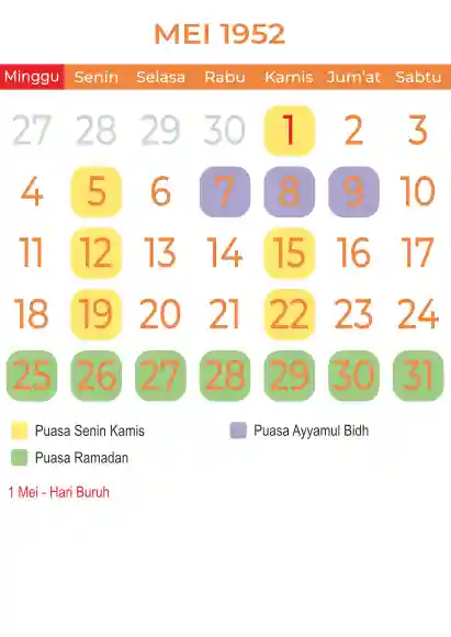 Template kalender puasa 1952, Versi yang lebih simple, cocok sekali buat anda yang ingin cetak kalender yang bermanfat buat umat.