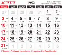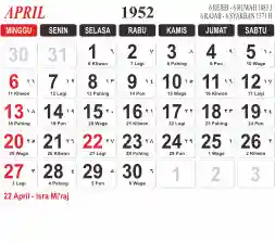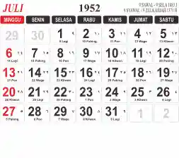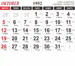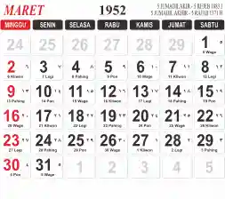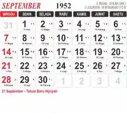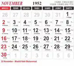 Tema kalender 1952 yang cocok buat desain kalender yang lebih lebar, cocok buat kalender kantor atau desain yang lebih minimalis.