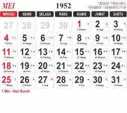 List hari libur tahun 1952 pada Tema 3 (Wide)
