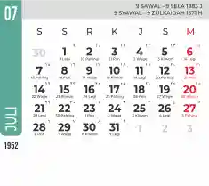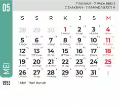 List hari libur tahun 1952 pada Tema 7