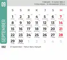 Template kalender 1952 dengan konsep minimalis modern dengan warna yang soft, cocok sekali buat kantor / bisnis seperti bank.