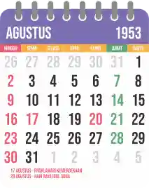 Template kalender 1953 yang bertemakan lucu dan moderen. Bentuknya simple tanpa tanggal hijriah dan tanggal jawa. Cocok buat kebutuhan kalender yang sifatnya universal.