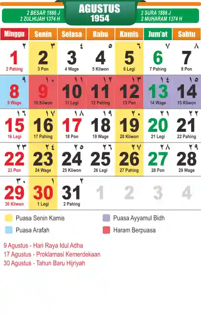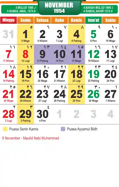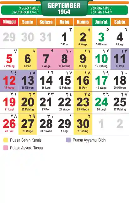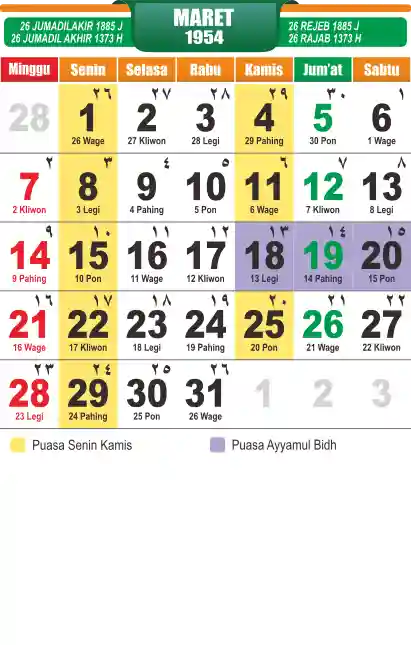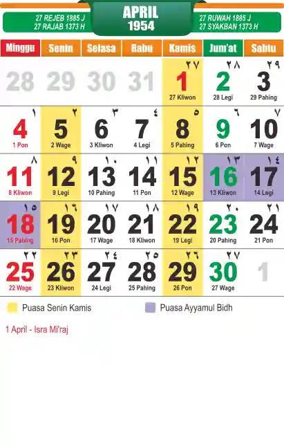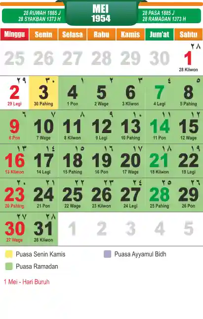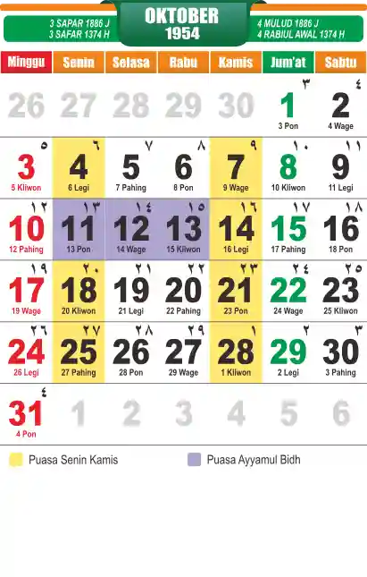 Template kalender puasa 1954, cocok sekali buat anda yang ingin cetak kalender yang bermanfat buat umat.