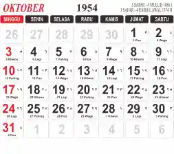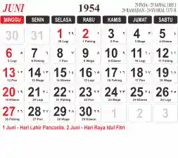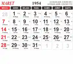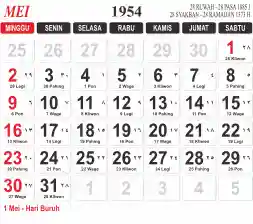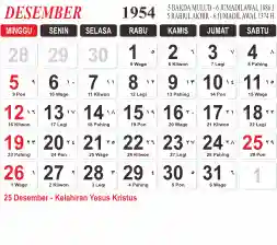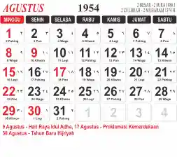 List hari libur tahun 1954 pada Tema 3 (Wide)