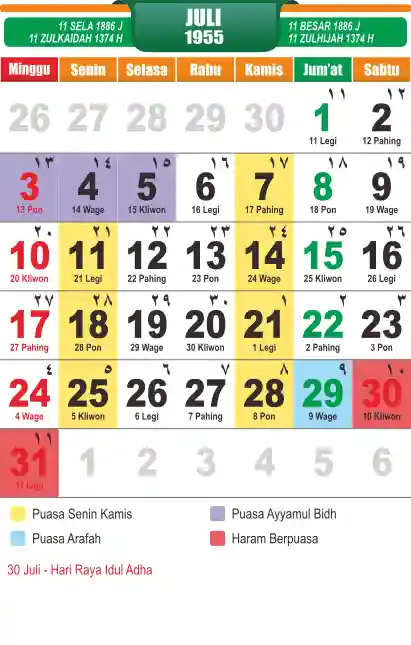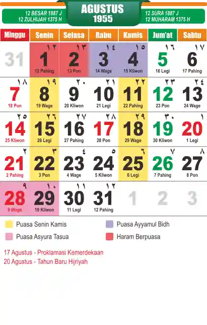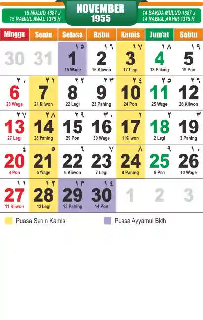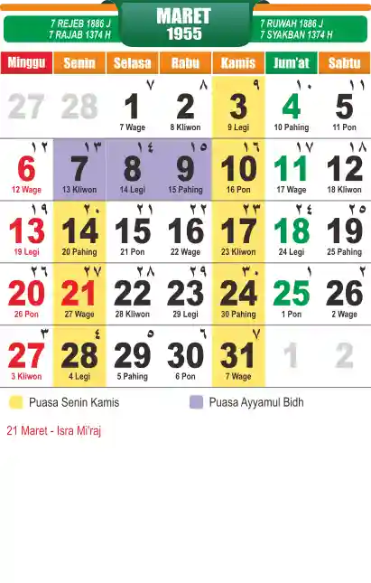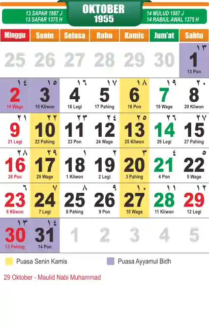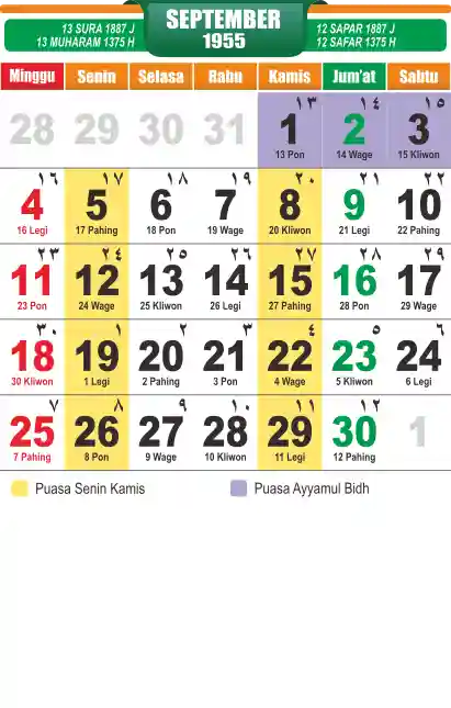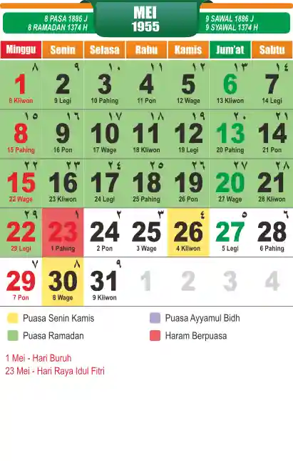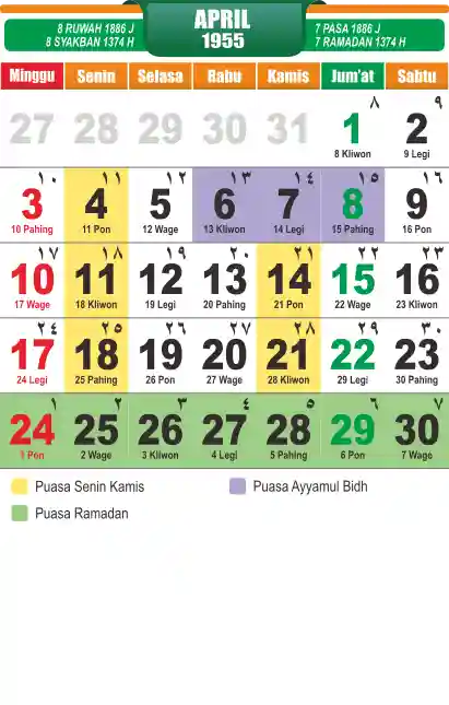 Template kalender puasa 1955, cocok sekali buat anda yang ingin cetak kalender yang bermanfat buat umat.